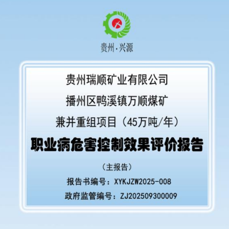 貴州瑞順礦業(yè)有限公司播州區(qū)鴨溪鎮(zhèn)萬順煤礦兼并重組項目(45萬噸/年)職業(yè)病危害控制效果評價