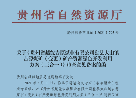 貴州省越能吉原煤業(yè)有限公司盤縣大山鎮(zhèn)吉源煤礦(變更)礦產(chǎn)資源綠色開發(fā)利用方案(三合一)