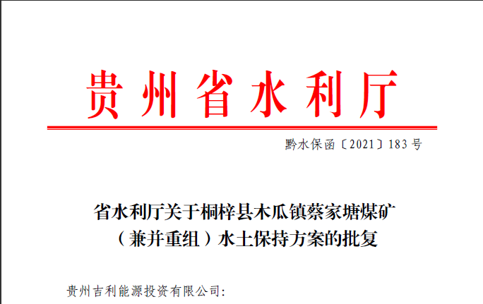 貴州吉利能源投資有限公司桐梓縣木瓜鎮(zhèn)蔡家塘煤礦(兼并重組)水土保持方案