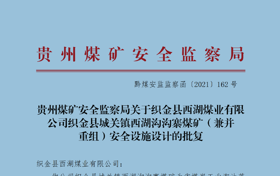 織金縣城關(guān)鎮(zhèn)西湖溝溝寨煤礦安全設(shè)施設(shè)計(jì)(變更)