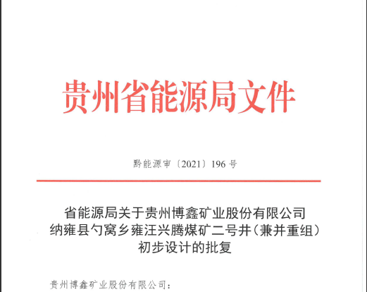 貴州博鑫礦業(yè)股份有限公司納雍縣新房鄉(xiāng)營(yíng)龍煤礦(兼并重組)初步設(shè)計(jì)