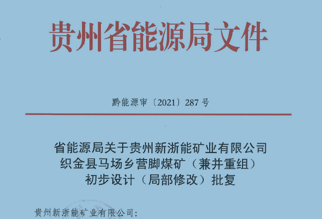 貴州新浙能礦業(yè)有限公司 織金縣馬場鄉(xiāng)營腳煤礦(兼并重組) 初步設計(局部修改)
