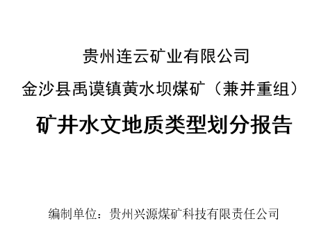 金沙縣禹謨鎮(zhèn)黃水壩煤礦(兼并重組) 礦井水文地質(zhì)類型劃分報告