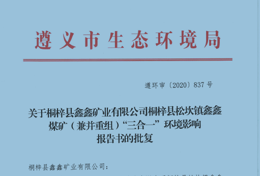 桐梓縣鑫鑫礦業(yè)有限公司桐梓縣松坎鎮(zhèn)鑫鑫煤礦(兼并重組)“三合一”環(huán)境影響報告