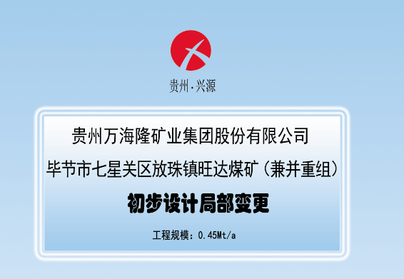 貴州萬海隆礦業(yè)集團股份有限公司 畢節(jié)市七星關(guān)區(qū)放珠鎮(zhèn)旺達煤礦(兼并重組) 初步設(shè)計局部變更