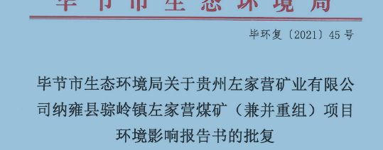 貴州左家營礦業(yè)有限公司納雍縣骔嶺鎮(zhèn) 左家營煤礦(兼并重組)項(xiàng)目“三合一”環(huán)境影響報(bào)告書