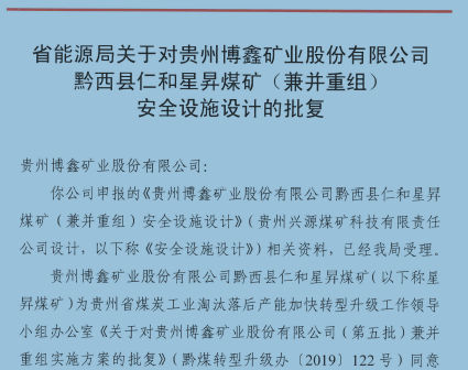 貴州博鑫礦業(yè)股份有限公司 黔西縣仁和星昇煤礦(兼并重組) 安全設(shè)施設(shè)計