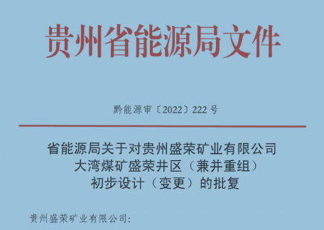 貴州盛榮礦業(yè)有限公司 大灣煤礦盛榮井區(qū)(兼并重組) 初步設計(變更)