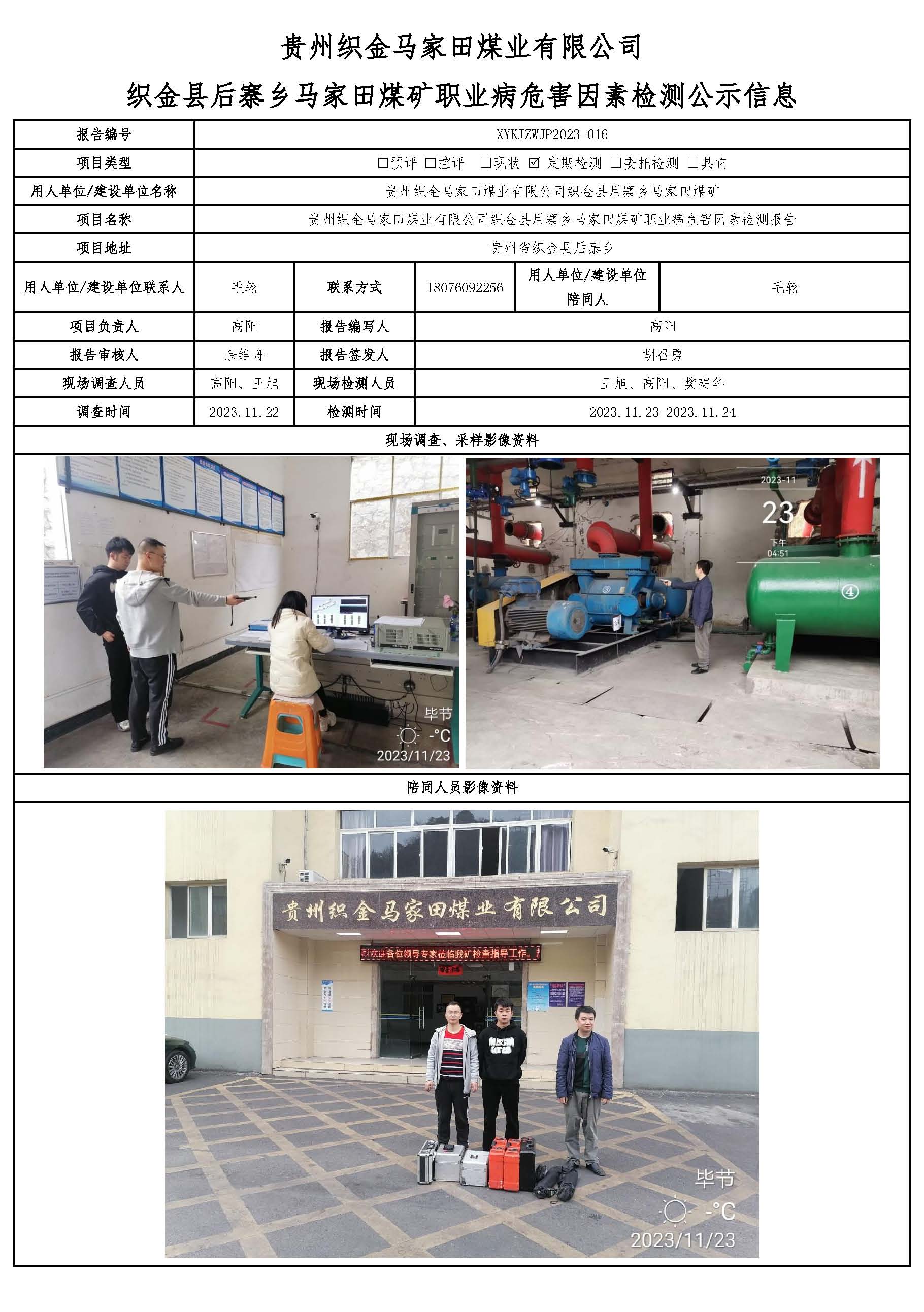 貴州織金馬家田煤業(yè)有限公司 織金縣后寨鄉(xiāng)馬家田煤礦職業(yè)病危害因素檢測公示信息