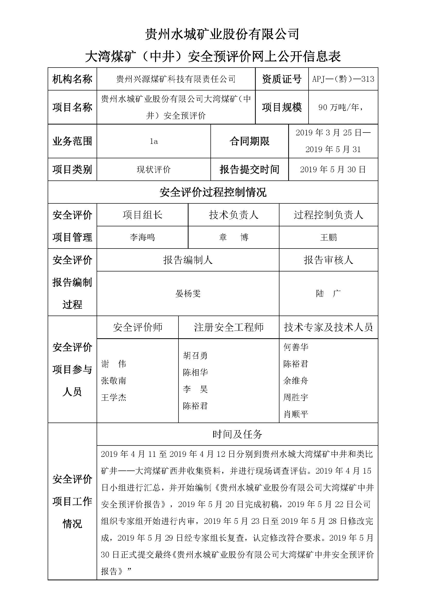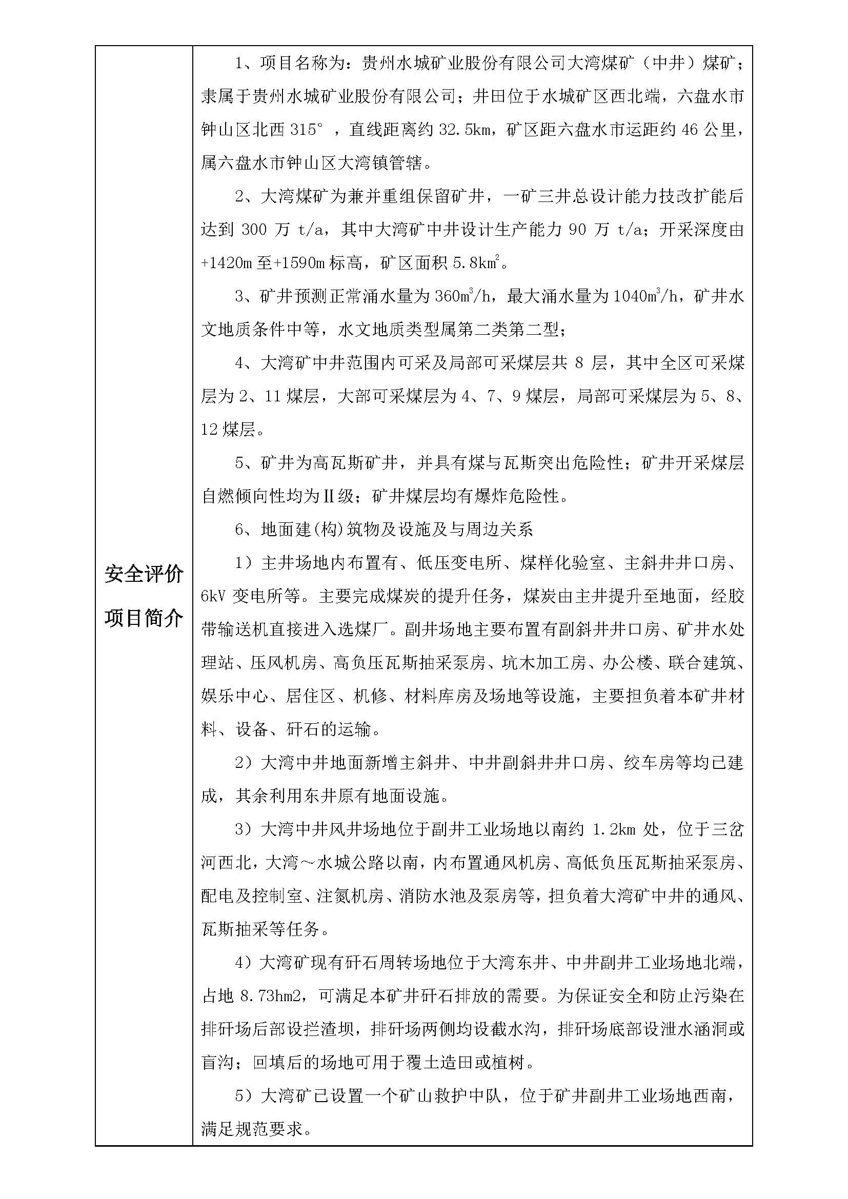 貴州水城礦業(yè)股份有限公司大灣煤礦(中井)安全預評價網(wǎng)上公開信息表