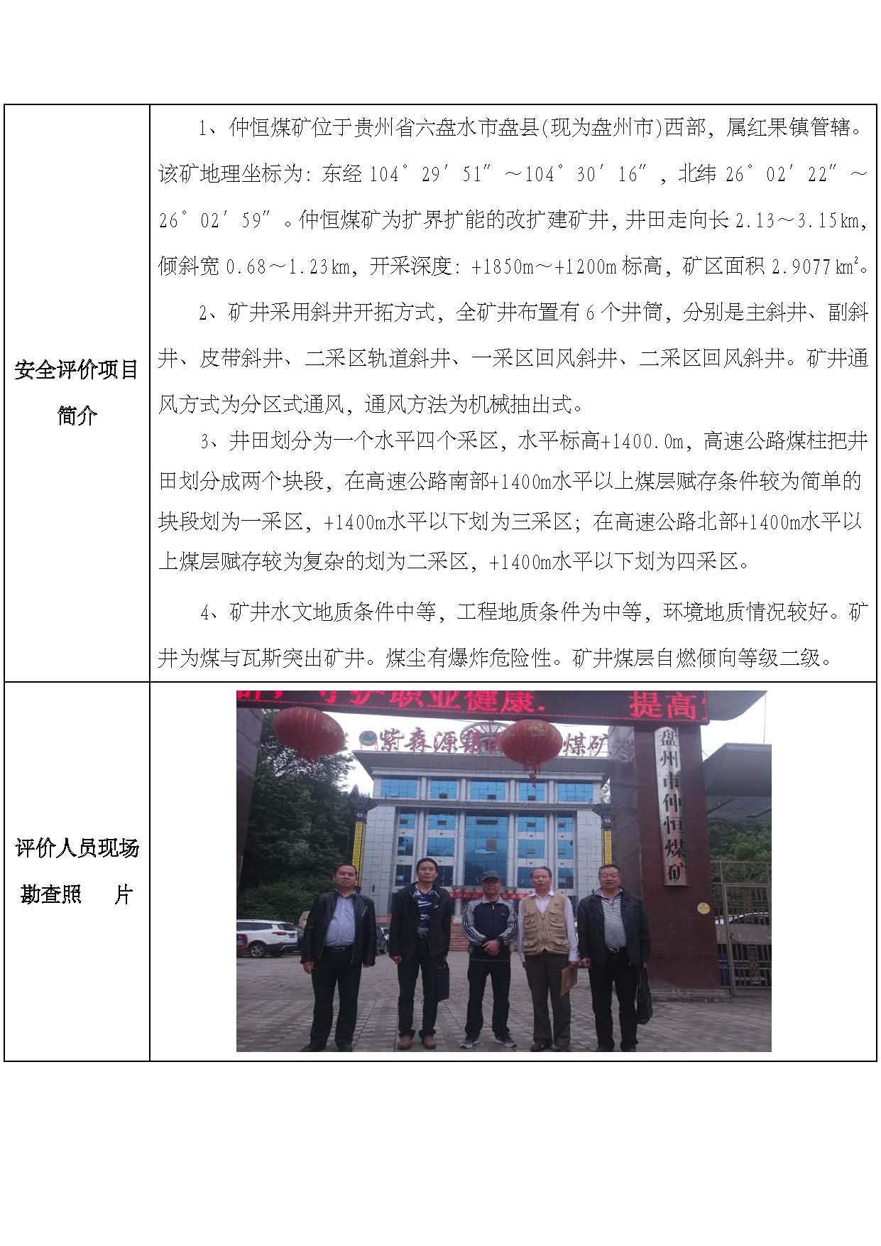 貴州盤縣紫森源(集團)實業(yè)發(fā)展投資有限公司盤縣紅果鎮(zhèn)仲恒煤礦安全現(xiàn)狀評價網(wǎng)上公開信息表