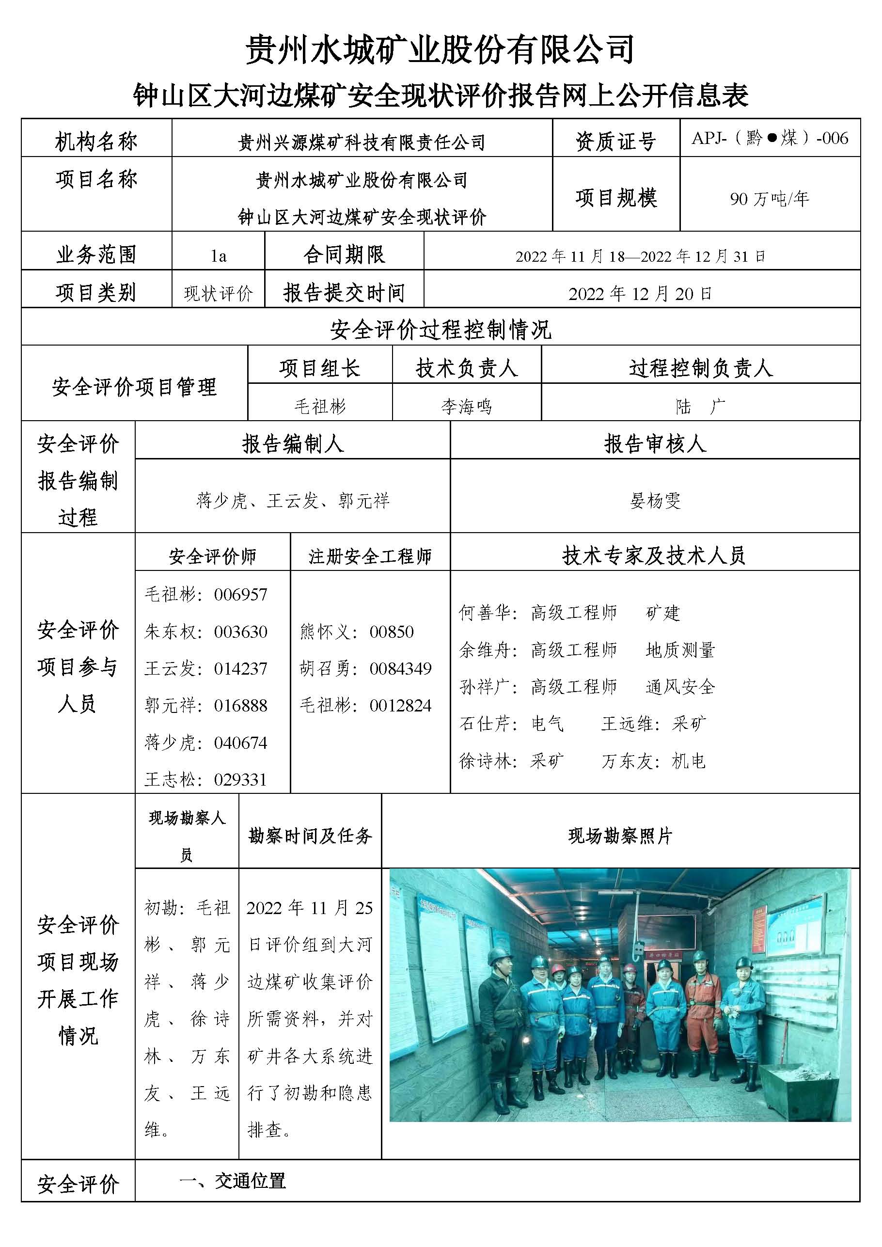 貴州水城礦業(yè)股份有限公司 鐘山區(qū)大河邊煤礦安全現(xiàn)狀評(píng)價(jià)報(bào)告網(wǎng)上公開(kāi)信息表