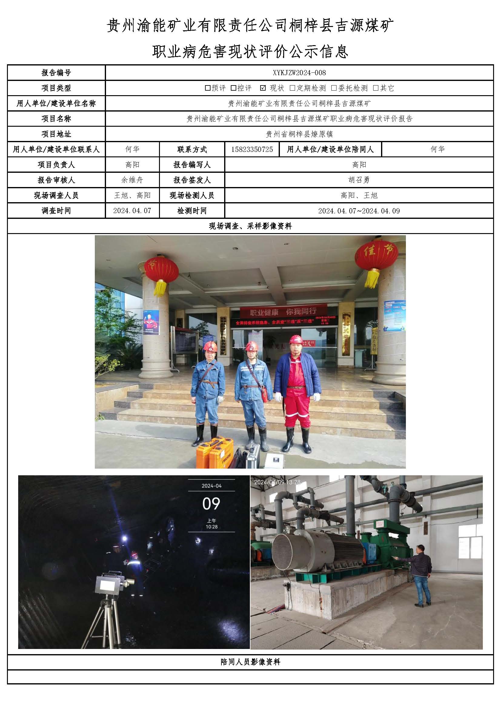 貴州渝能礦業(yè)有限責(zé)任公司桐梓縣吉源煤礦 職業(yè)病危害現(xiàn)狀評價公示信息
