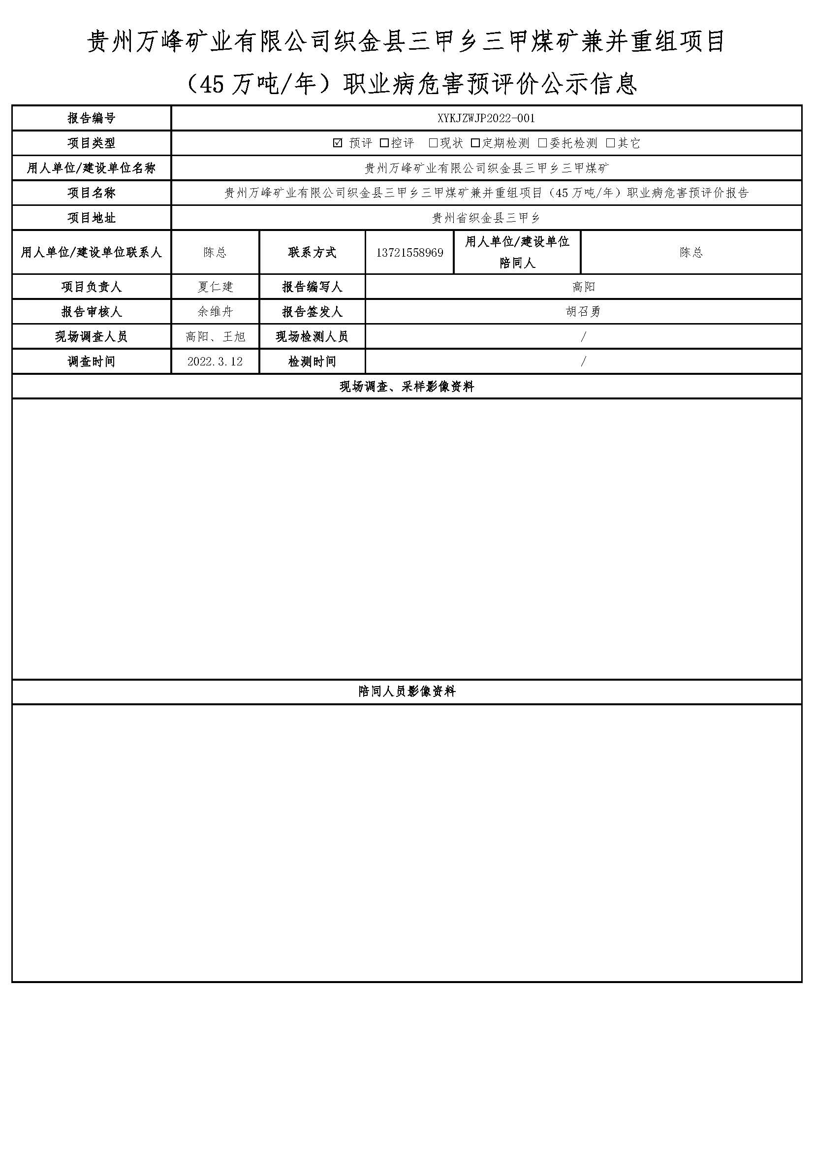貴州萬峰礦業(yè)有限公司織金縣三甲鄉(xiāng)三甲煤礦兼并重組項(xiàng)目 (45萬噸/年)職業(yè)病危害預(yù)評價公示信息