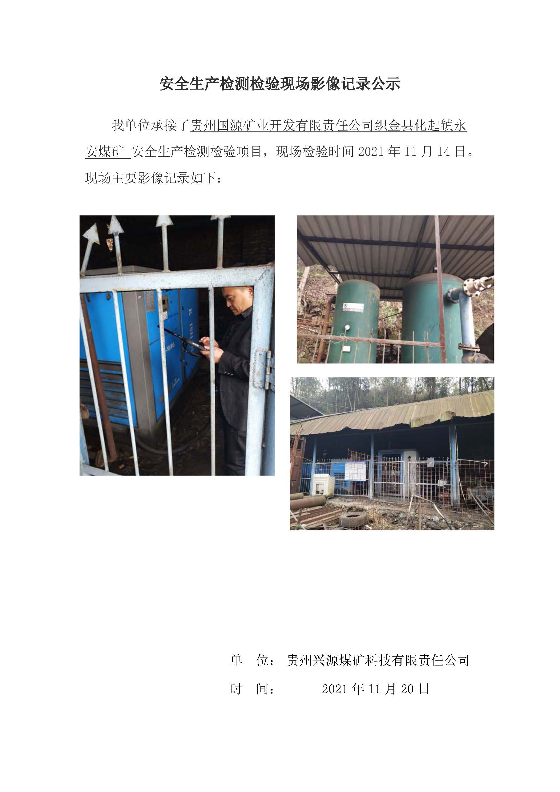 安全生產(chǎn)檢測檢驗(yàn)現(xiàn)場影像記錄公示【貴州國源礦業(yè)開發(fā)有限責(zé)任公司織金縣化起鎮(zhèn)永安煤礦】