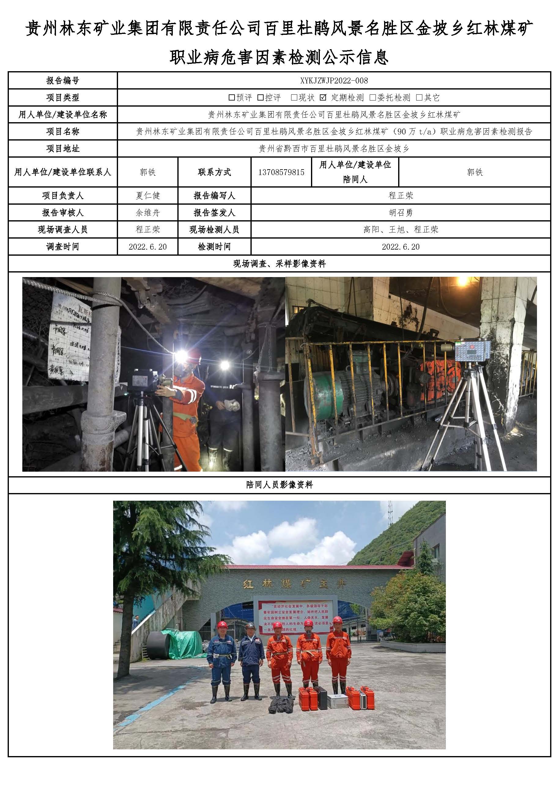 貴州林東礦業(yè)集團(tuán)有限責(zé)任公司百里杜鵑風(fēng)景名勝區(qū)金坡鄉(xiāng)紅林煤礦職業(yè)病危害因素檢測(cè)公示信息