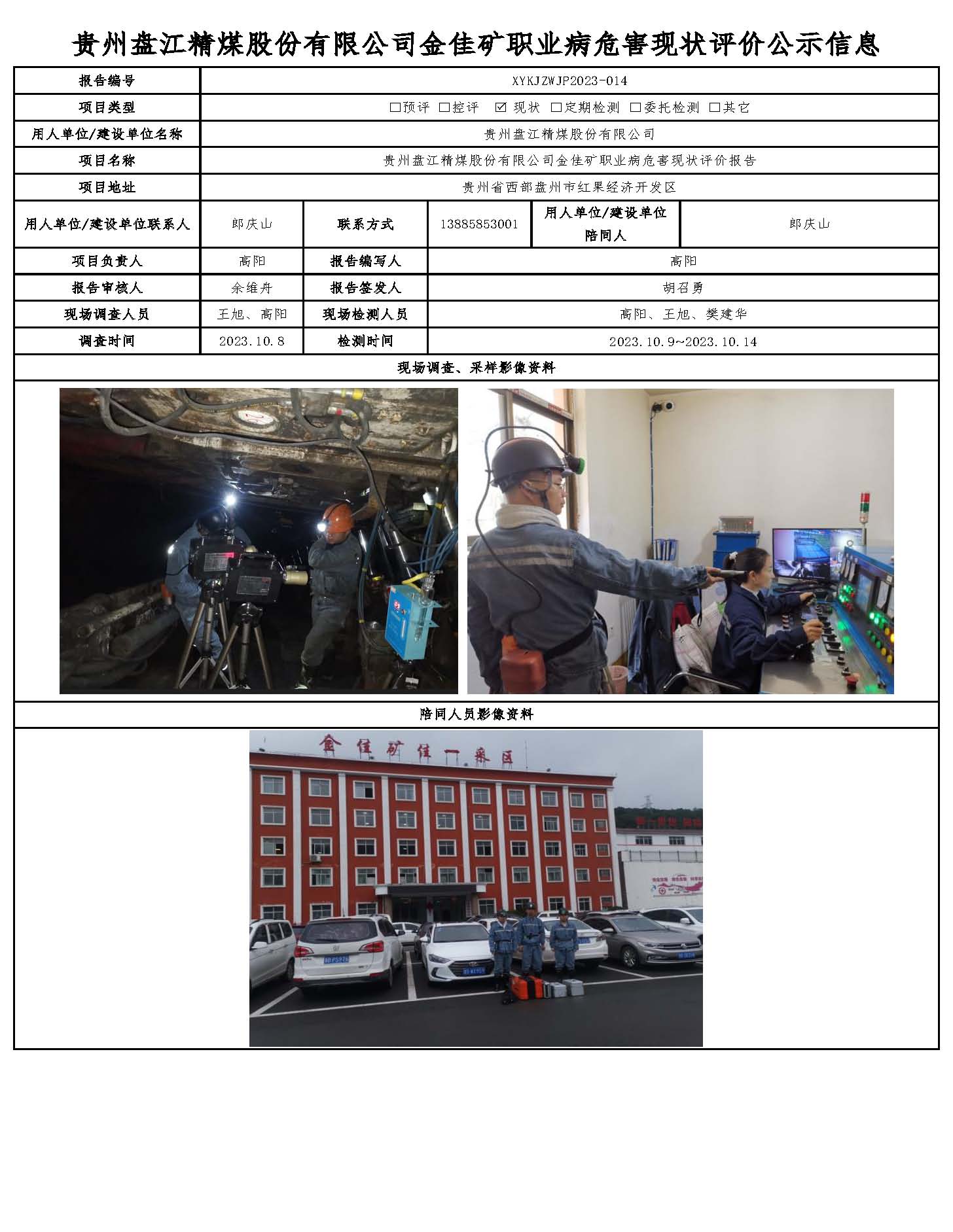 貴州盤江精煤股份有限公司金佳礦職業(yè)病危害現(xiàn)狀評(píng)價(jià)公示信息