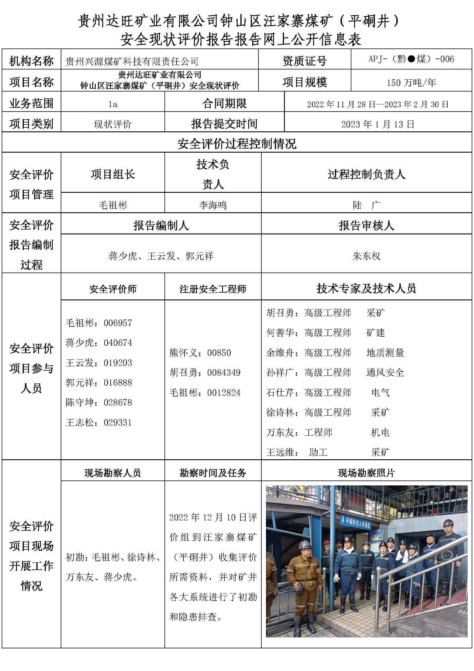 貴州達(dá)旺礦業(yè)有限公司鐘山區(qū)汪家寨煤礦(平硐井) 安全現(xiàn)狀評(píng)價(jià)報(bào)告報(bào)告網(wǎng)上公開信息表