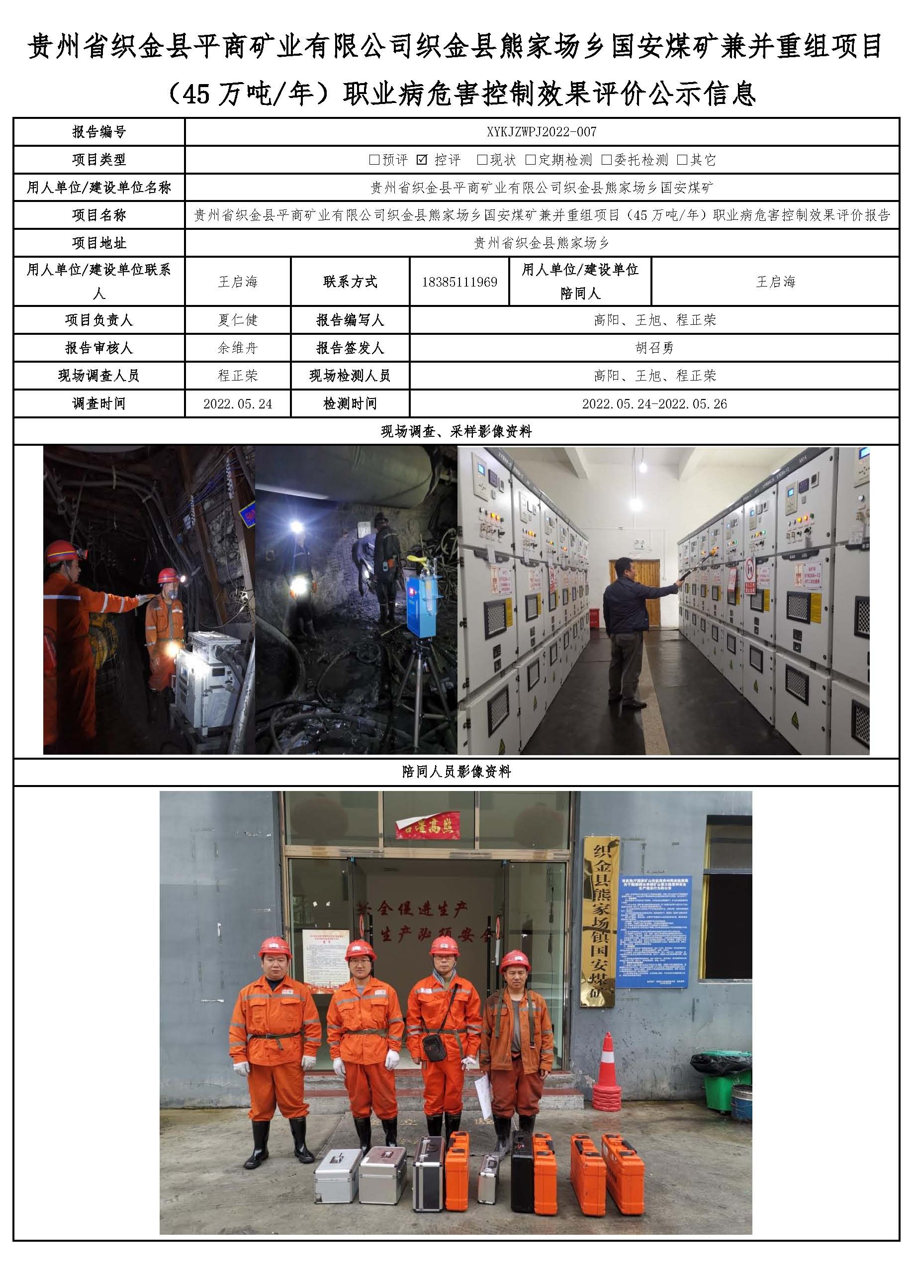 貴州省織金縣平商礦業(yè)有限公司織金縣熊家場(chǎng)鄉(xiāng)國(guó)安煤礦兼并重組項(xiàng)目職業(yè)病危害控制效果評(píng)價(jià)公示信息