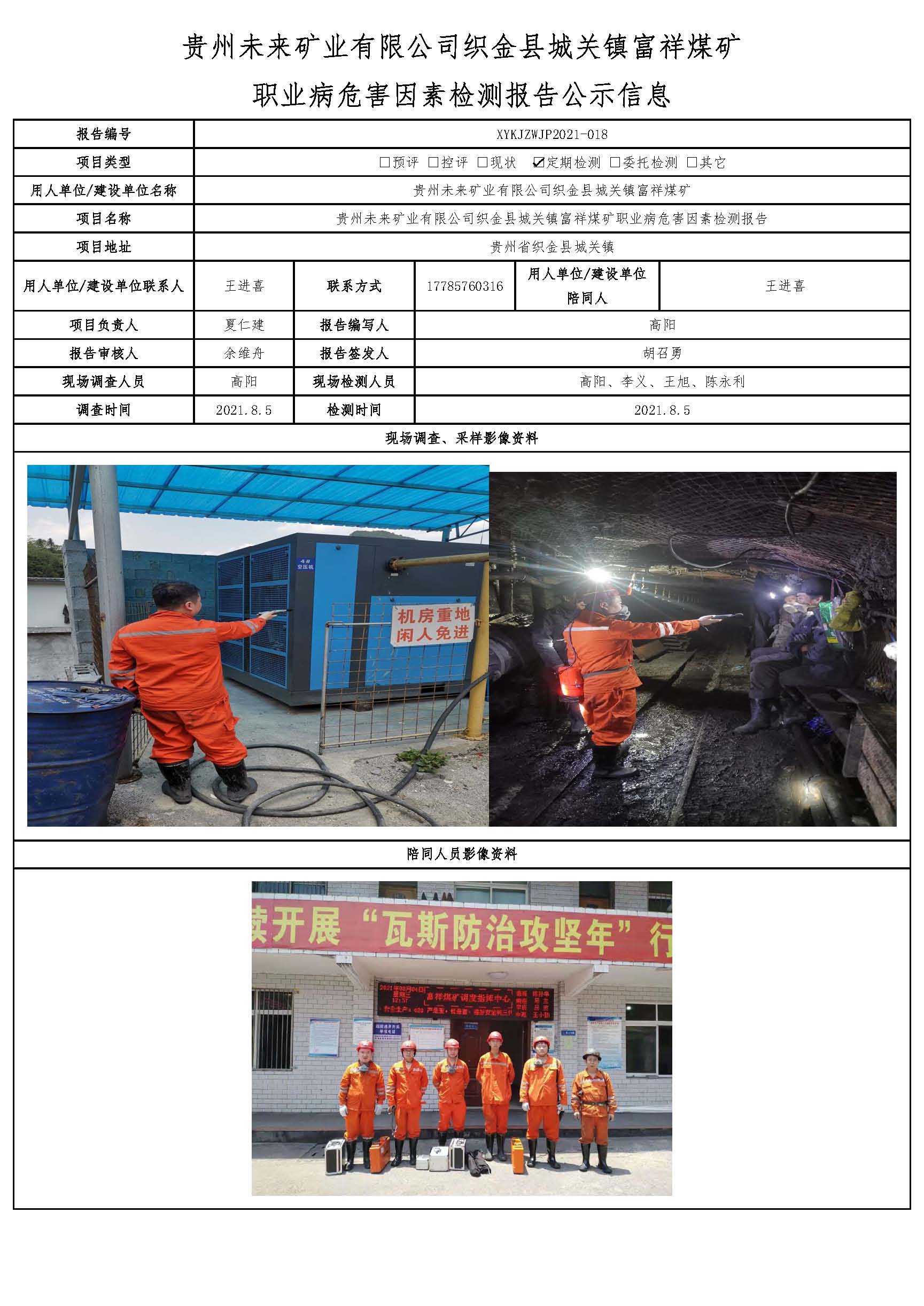 貴州未來礦業(yè)有限公司織金縣城關鎮(zhèn)富祥煤礦 職業(yè)病危害因素檢測報告公示信息