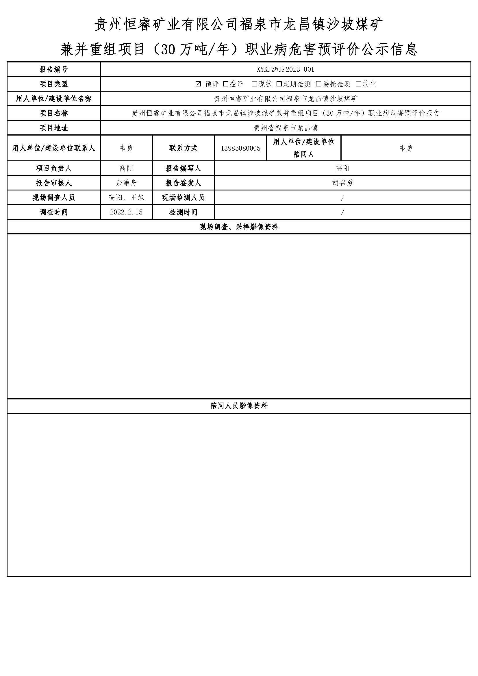 貴州恒睿礦業(yè)有限公司福泉市龍昌鎮(zhèn)沙坡煤礦 兼并重組項目(30萬噸/年)職業(yè)病危害預評價公示信息