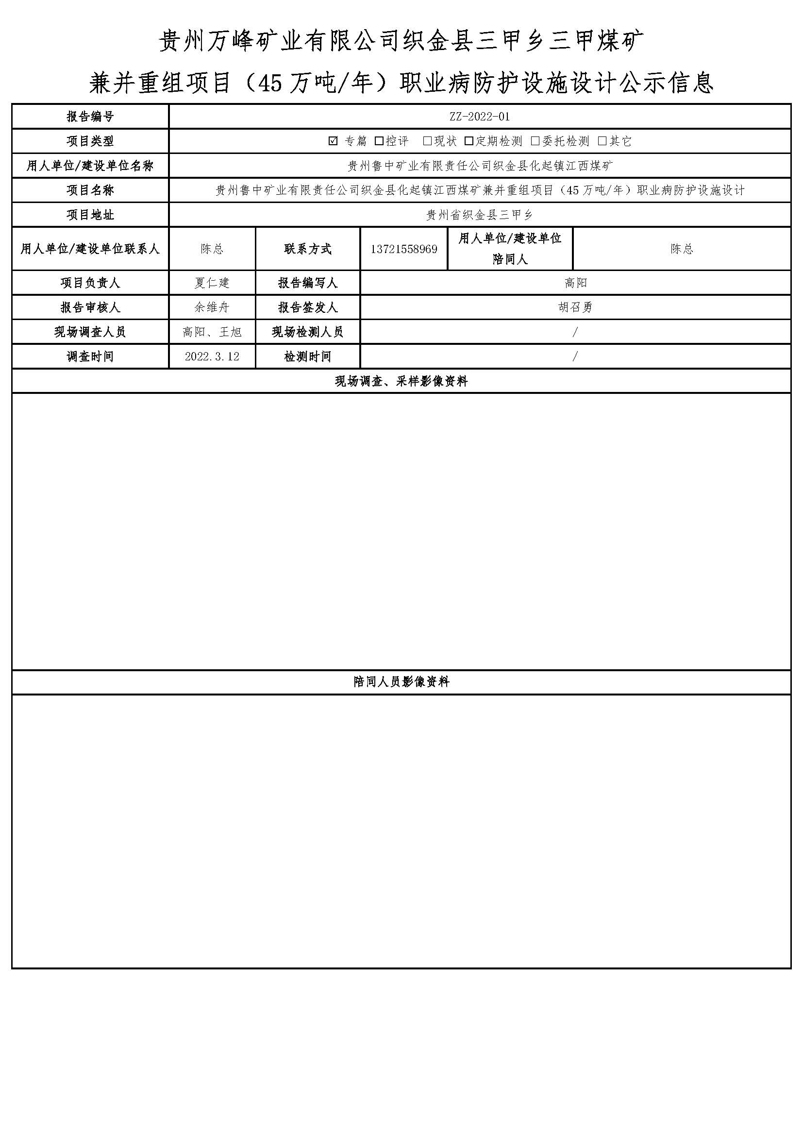 貴州萬峰礦業(yè)有限公司織金縣三甲鄉(xiāng)三甲煤礦 兼并重組項目(45萬噸/年)職業(yè)病防護設(shè)施設(shè)計公示信息
