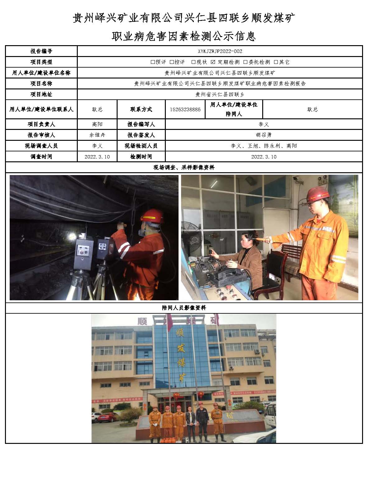 貴州嶧興礦業(yè)有限公司興仁縣四聯(lián)鄉(xiāng)順發(fā)煤礦職業(yè)病危害因素檢測公示信息