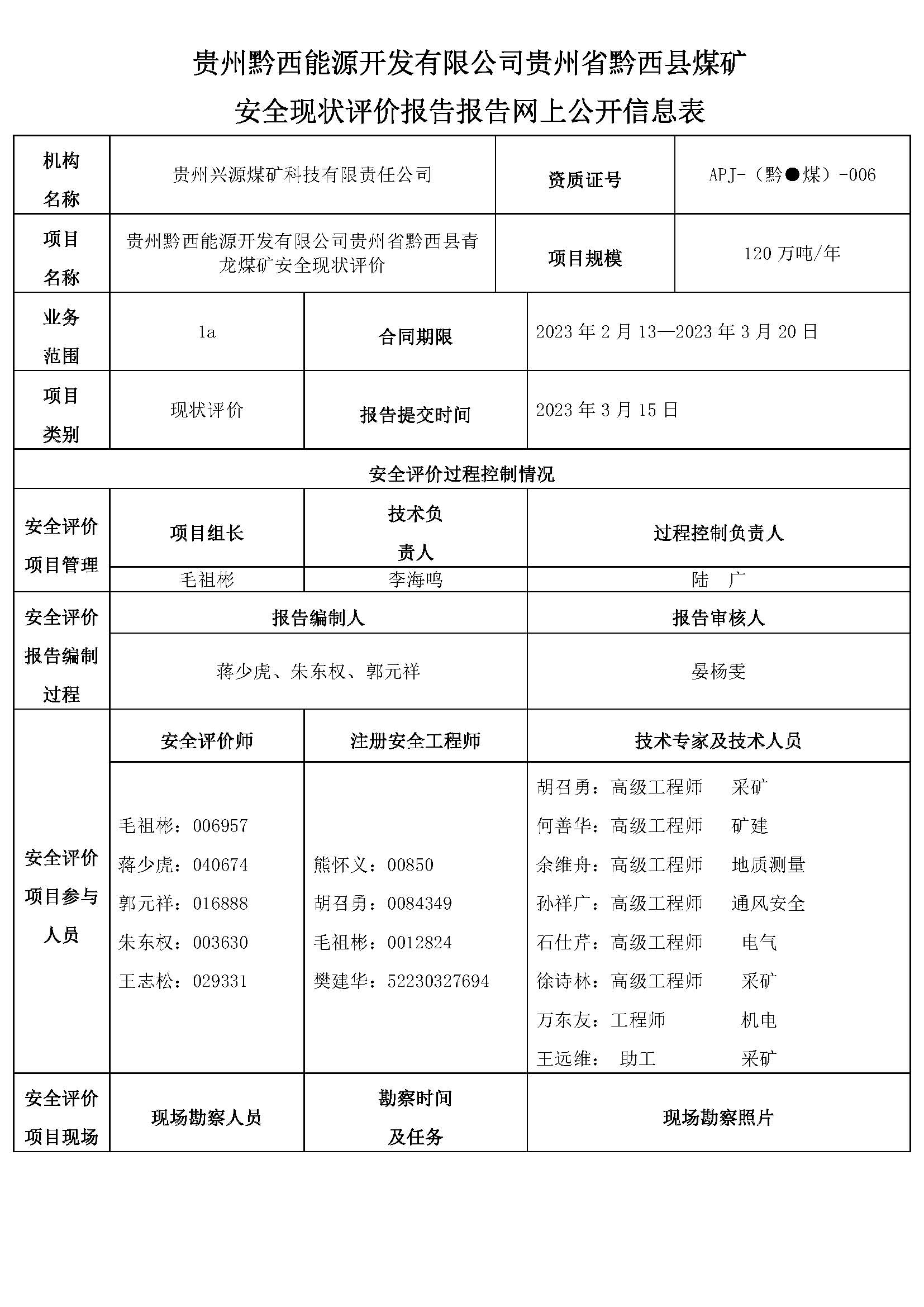 貴州黔西能源開(kāi)發(fā)有限公司貴州省黔西縣煤礦安全現(xiàn)狀評(píng)價(jià)報(bào)告報(bào)告網(wǎng)上公開(kāi)信息表