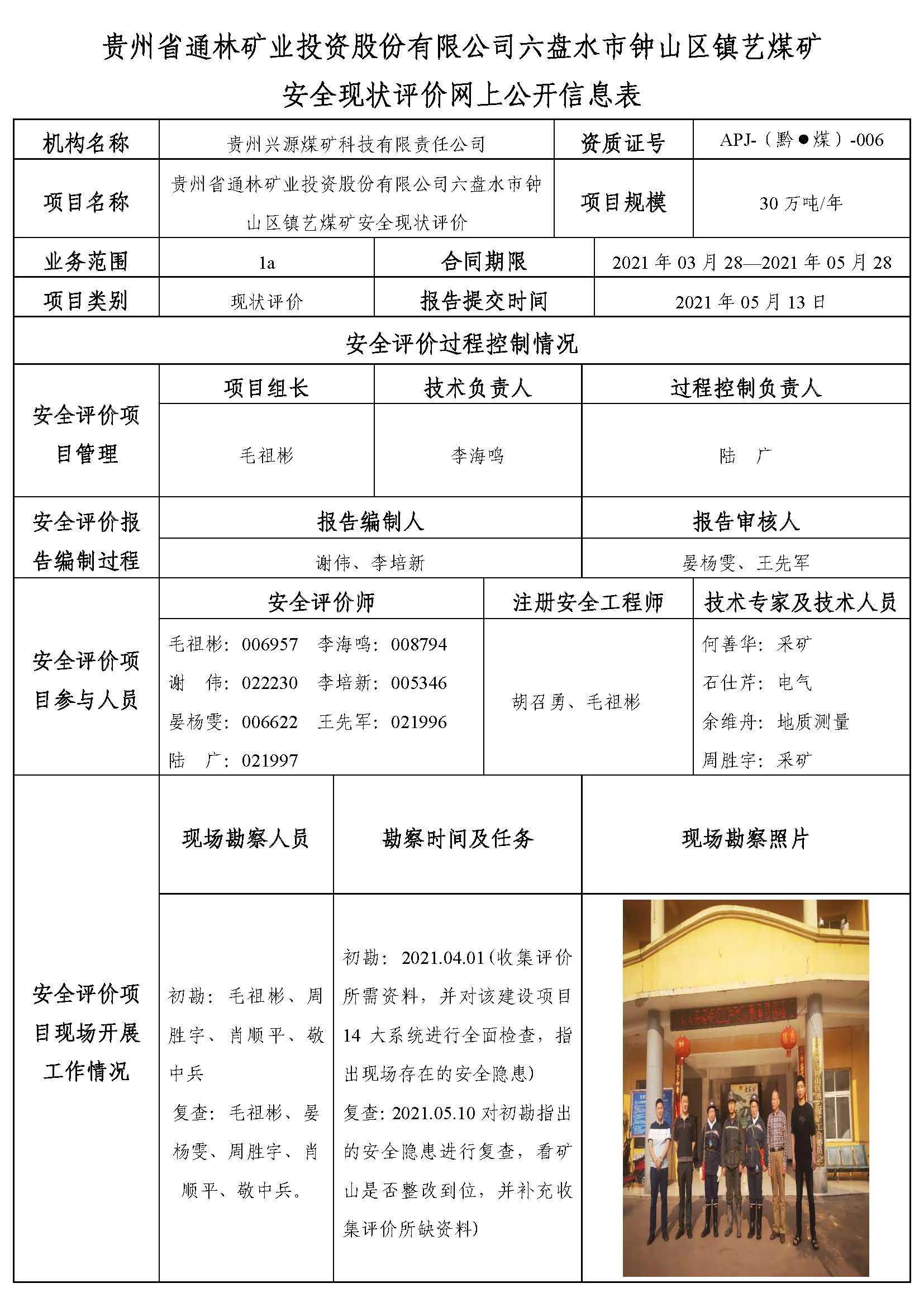 貴州省通林礦業(yè)投資股份有限公司六盤水市鐘山區(qū)鎮(zhèn)藝煤礦安全現(xiàn)狀評(píng)價(jià)網(wǎng)上公開(kāi)信息表