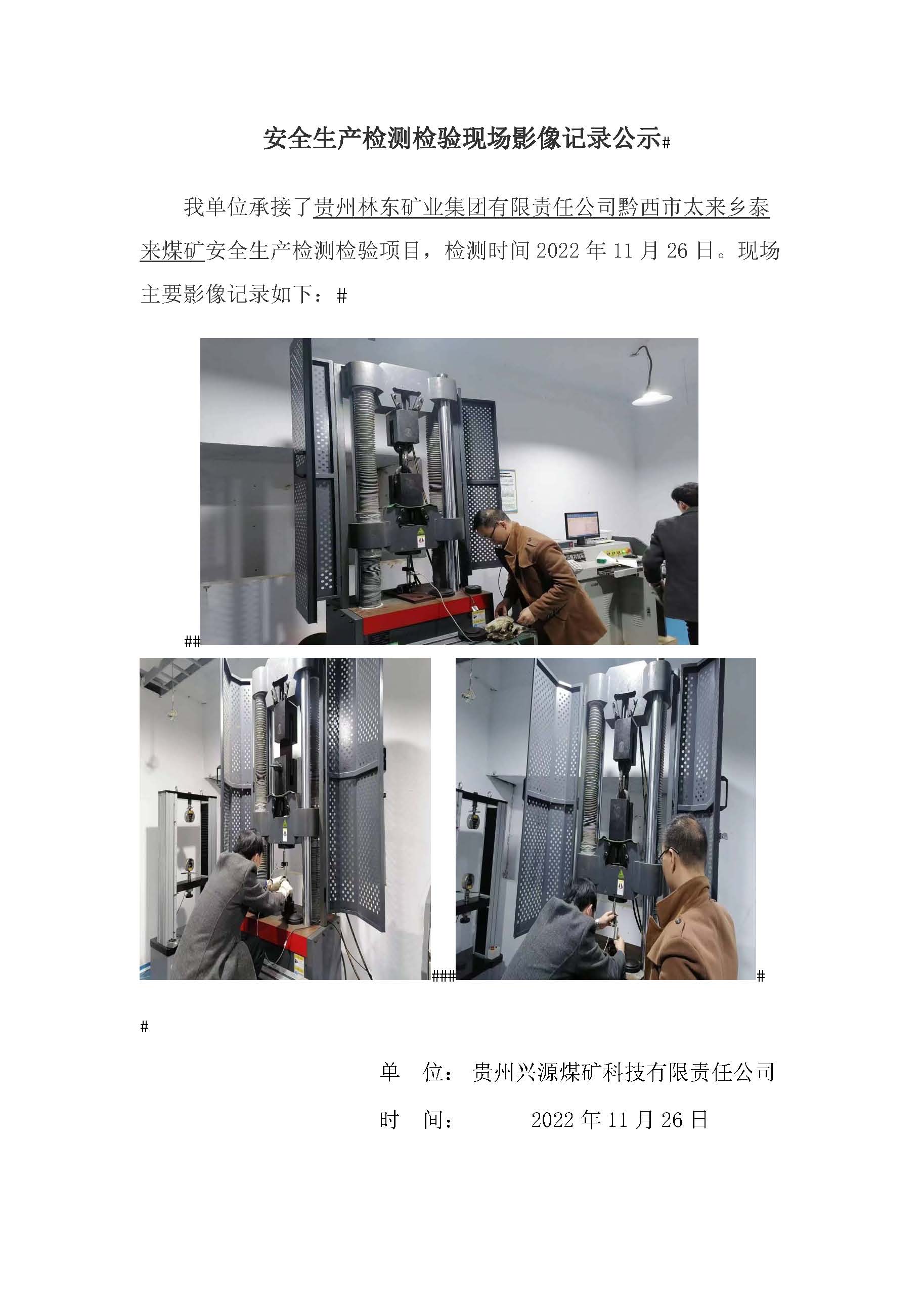 安全生產(chǎn)檢測(cè)檢驗(yàn)現(xiàn)場(chǎng)影像記錄公示【貴州林東礦業(yè)集團(tuán)有限責(zé)任公司黔西市太來(lái)鄉(xiāng)泰來(lái)煤礦】