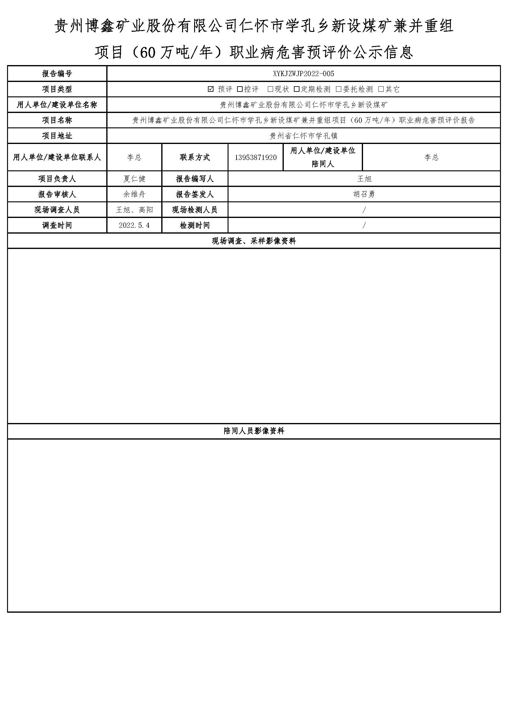 貴州博鑫礦業(yè)股份有限公司仁懷市學(xué)孔鄉(xiāng)新設(shè)煤礦兼并重組項(xiàng)目職業(yè)病危害預(yù)評(píng)價(jià)公示信息