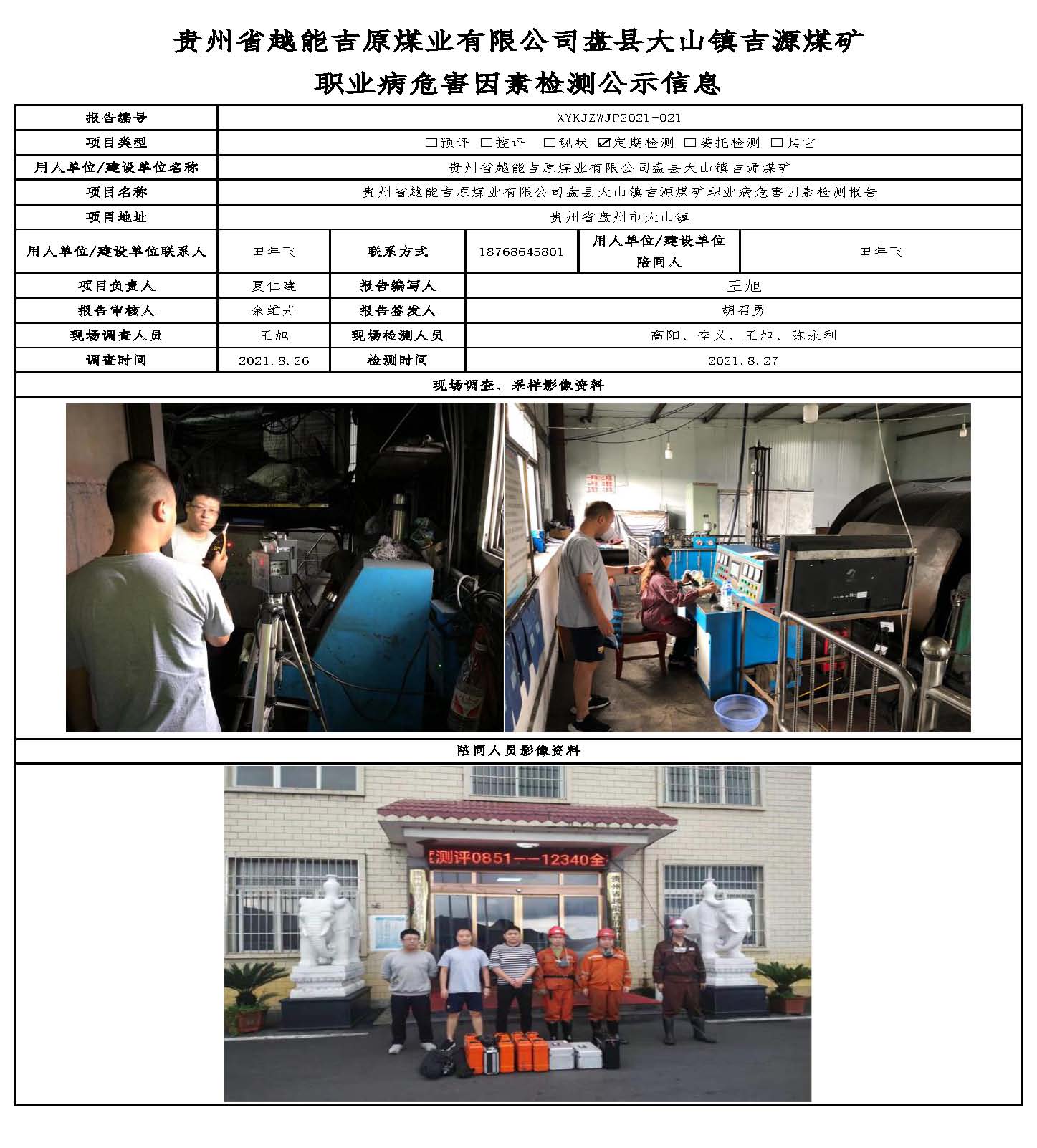 貴州省越能吉原煤業(yè)有限公司盤縣大山鎮(zhèn)吉源煤礦 職業(yè)病危害因素檢測公示信息