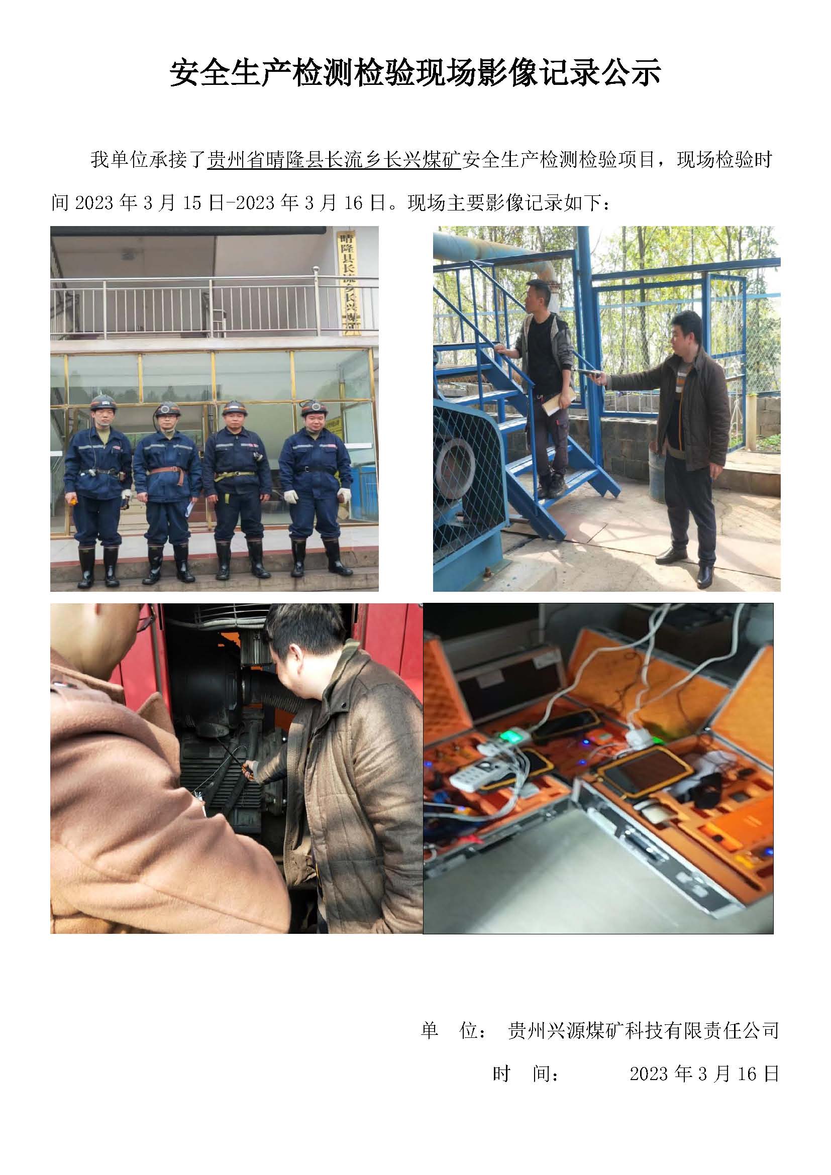 安全生產檢測檢驗現場影像記錄公示【貴州省晴隆縣長流鄉(xiāng)長興煤礦安全生產檢測檢驗項目】